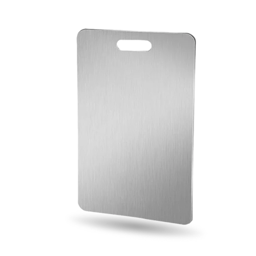 Nach dem Schneiden wischst du grobe Reste mit einem Spatel oder Messer ab und reinigst das Board unter warmem Wasser mit etwas Spülmittel. Durch die glatte Metalloberfläche bleiben kaum Rückstände haften, sodass dein Schneidebrett in wenigen Momenten wieder sauber ist. Für eine gründlichere Reinigung kannst du es zusätzlich in die Spülmaschine stellen. Da sich im Material kaum tiefe Rillen bilden, entstehen weniger Bereiche, in denen sich Bakterien und Gerüche festsetzen könnten – ein klarer Pluspunkt für alle, die häufig kochen.